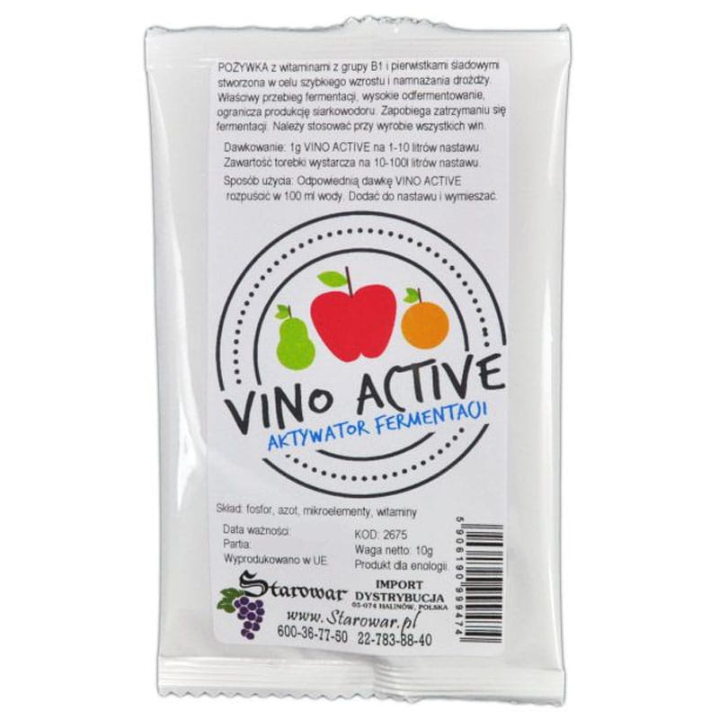Opakowanie VINO ACTIVE 10g wystarcza na 10-100 litrów wina bądź nastawu.