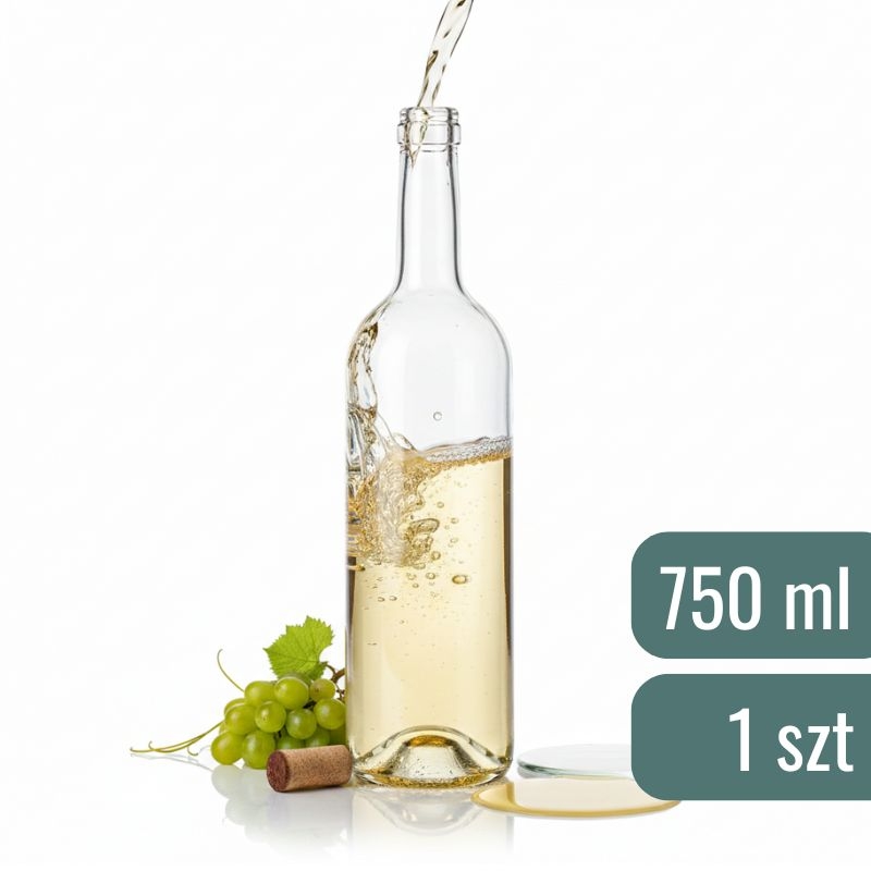 Bezbarwna butelka 0,75 L do win białych oraz lekkich trunków