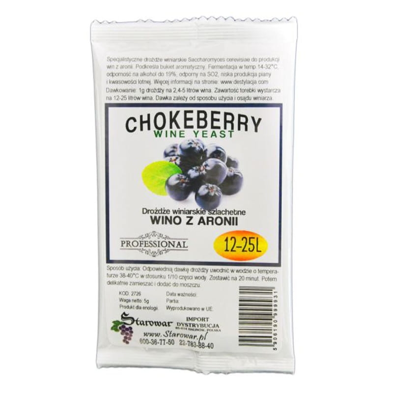 1g drożdży CHOKEBERRY WINE YEAST wystarcza na 2,4 - 5 litrów wina.