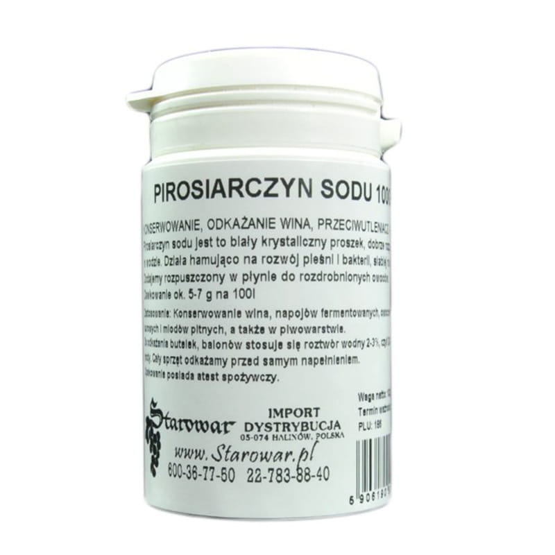 Pirosiarczyn sodu spożywczy 100g - konserwowanie, odkażanie wina E223 Na2S2O5-67% SO2