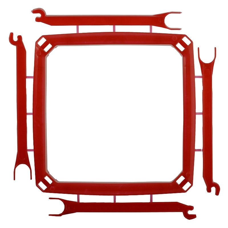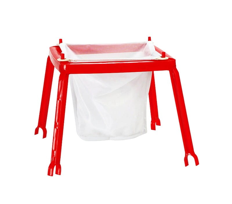 Stelaż plastikowy ma za zadanie utrzymać worek filtracyjny, który będzie służyć do odcedzenia wytłoków owoców od moszczu.