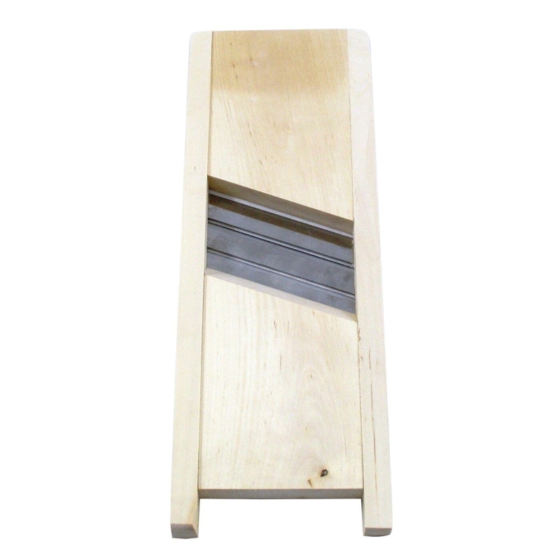 Szatkownica do kapusty i warzyw, wykonana z drewna bukowego, wyposażona w trzy ostrza ze stali nierdzewnej .