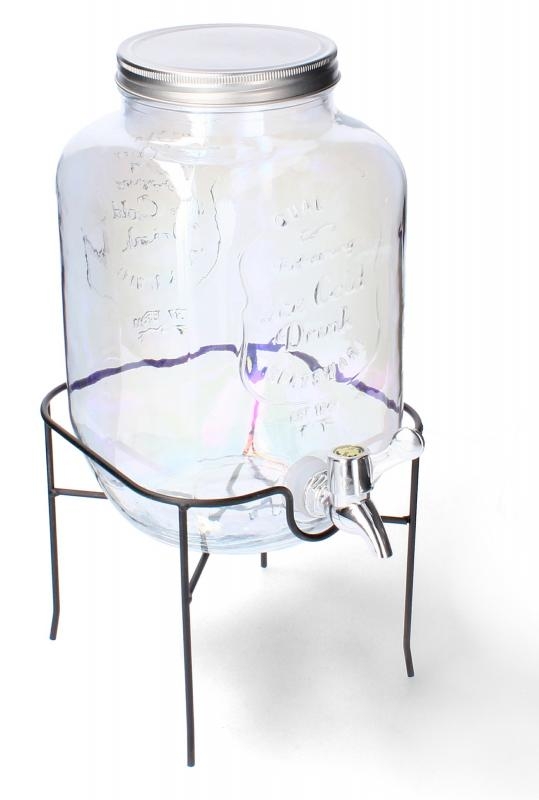 Słój Szklany na Lemoniadę 4L z Kranem - Tęczowy Połysk + Stojak