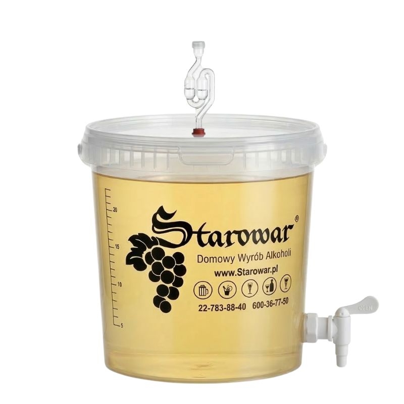 - wyposażenie: pokrywa, uchwyty, rurka fermentacyjna, uszczelka do rurki, kranik antysedymentacyjny