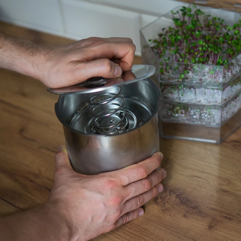 Szynkowar pracuje w garnku z wodą. Najważniejsze są: stabilna temperatura parzenia, odpowiedni poziom wody i prawidłowa ilość wsadu, żeby docisk działał jak trzeba.